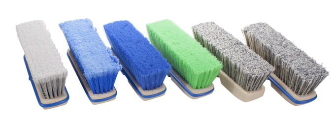 Filling material is staple set in foam plastic block. The 10 inch blocks have one threaded flo-thru and one tapered handle hole. Handle sold separately.  Packed in individual cartons. These brushes are Acid Resistant. Although these high-quality brushes are recommended for use on all types of vehicles, some finishes may be more susceptible to scratching than others; always test in an inconspicuous area before use.