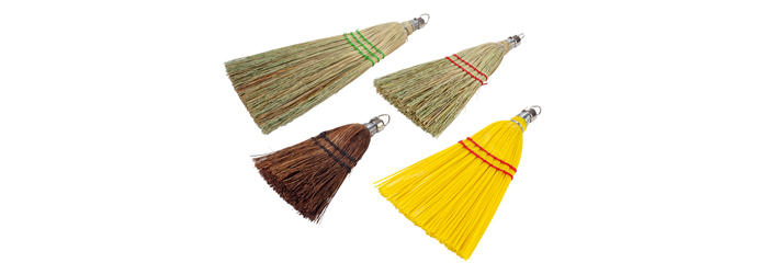 Sewed two times, cad. plated ring cap. These are the best quality whisk brooms for home, automobile and office.